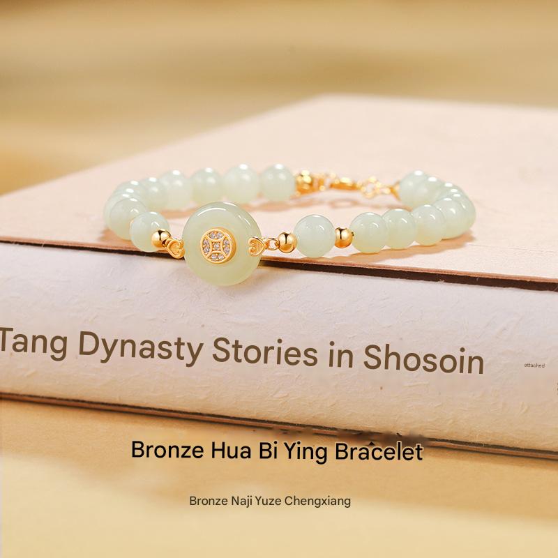 Natural Hetian jade round bead peace buckle bracelet S925 sterling silver bracelet light luxury high-end gift